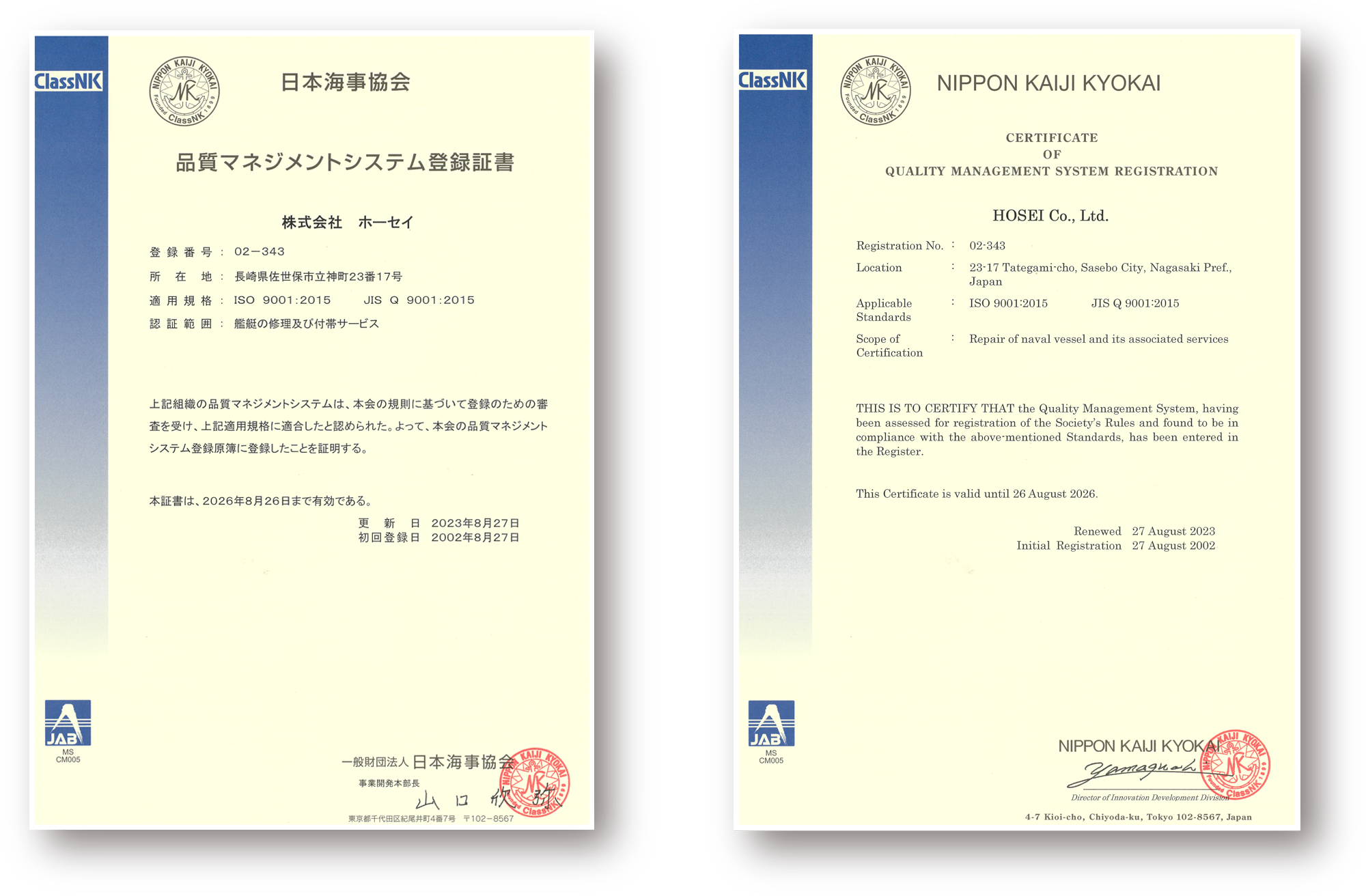 艦船修理事業は、常に100%の成果を求められる仕事。「おおむね良好」「8割方達成」、そんな中途半端な指標は、この世界には存在しないと言ってもいいでしょう。お客様に寄せられる厳しくも厚い信頼とご期待に確実にお応えできるよう、ホーセイの社内では各部門が日々緊密に連携し、常に120%の努力を尽くして技術力を磨いています。昨日より今日、今日より明日。着実なレベルアップを目指す挑戦の向こうに、想像を超えるほどの高みに届く未来が待っています。
